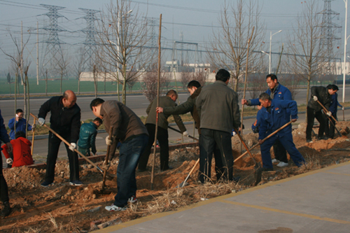 春回大地萬物蘇,植樹添綠正當(dāng)時。3月26日,公司組織開展了春季植樹綠化活動,各職能部室及車間人員積極參加活動,僅用兩個多小時,就把600余株柳樹和欒樹苗深植沃土。