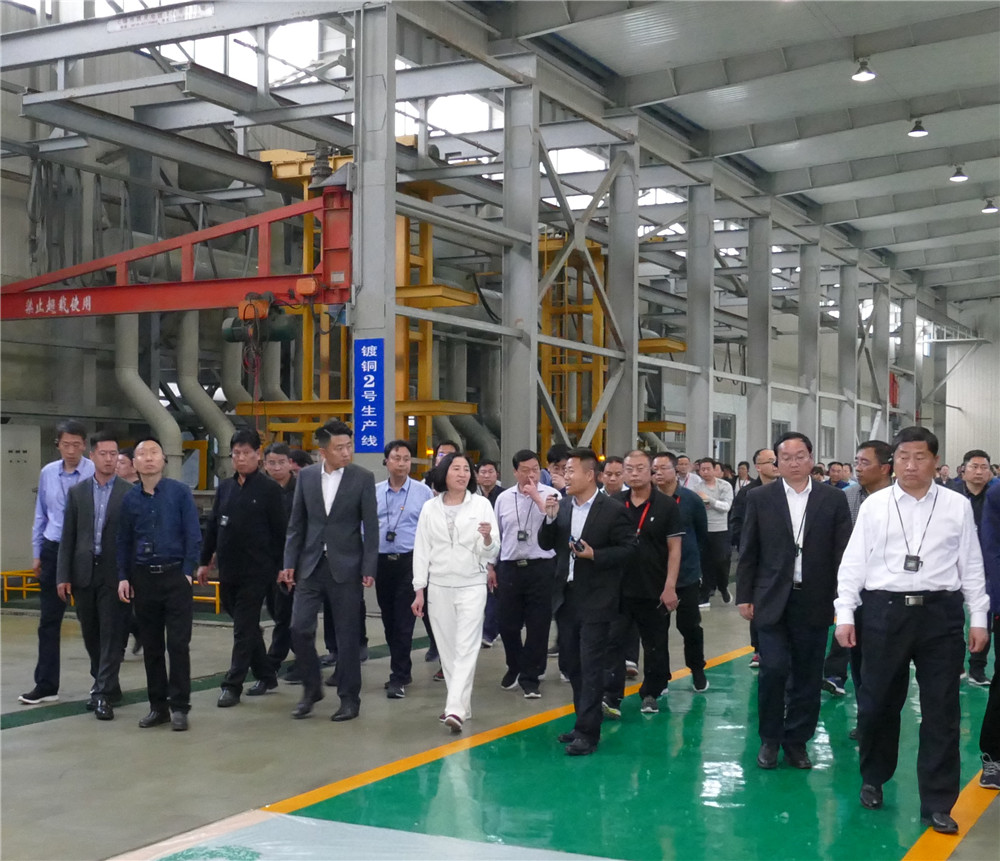 此次觀摩團主要對我公司的表面處理車間電鍍工藝、土壤污染源頭防范、污水處理、危險廢物管理等方面進行考察??偨浝砉A代表集團公司對各位領導的到來表示熱烈的歡迎,并對公司基本情況、環(huán)保投入等方面做了簡要介紹。公司環(huán)保項目辦主任李宏旺對公司的電鍍工藝、土壤污染源頭防范、污水處理、危險廢物管理做了詳細的介紹。公司的環(huán)保治理工作得到了觀摩團的一致好評。