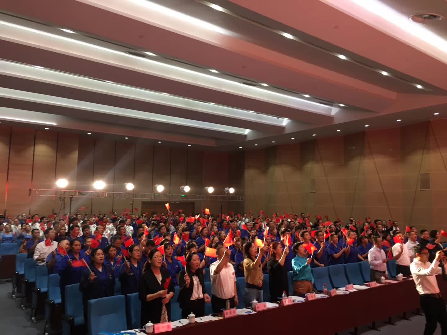 活動(dòng)在全體合唱《歌唱祖國》的歌聲中達(dá)到高潮。集團(tuán)公司主要領(lǐng)導(dǎo)登臺(tái)同全場(chǎng)員工舞動(dòng)起鮮艷的五星紅旗,共同歌唱祖國,歌唱美好的新時(shí)代。
