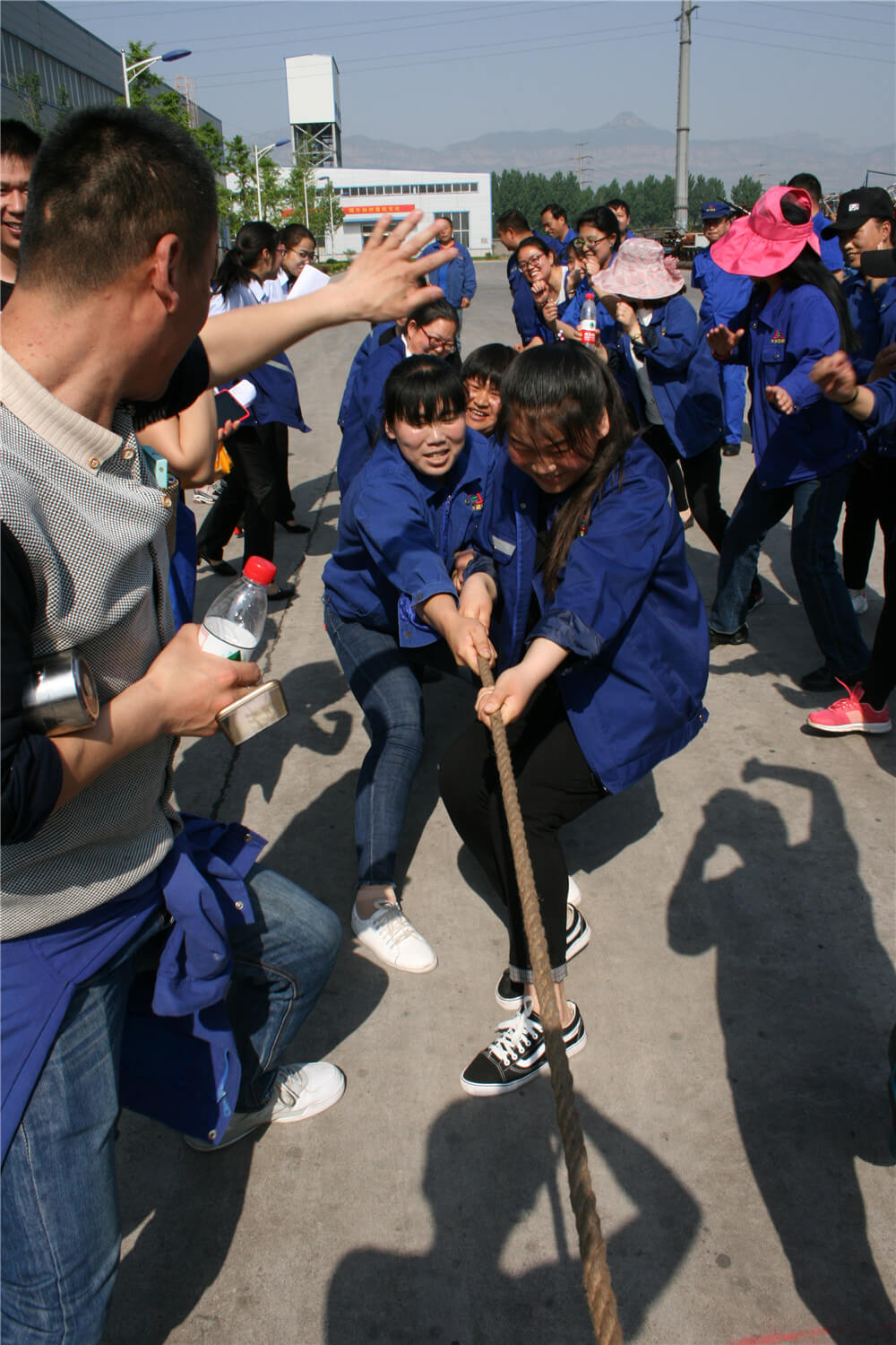 開幕式結(jié)束后,籃球、短跑、接力、拔河、跳繩、踢毽、乒乓球、羽毛球、象棋等13個(gè)項(xiàng)目在指定的比賽場地同時(shí)舉行?;@球場上身穿藍(lán)球衣朗坤公司隊(duì)和紅色球衣生產(chǎn)系統(tǒng)隊(duì)的比賽精彩紛呈,扣人心弦。隨著"砰"一聲,發(fā)令槍響,接力運(yùn)動員疾步如飛,向終點(diǎn)沖刺。觀眾“加油、加油”的助威吶喊聲,將拔河比賽推向高潮。