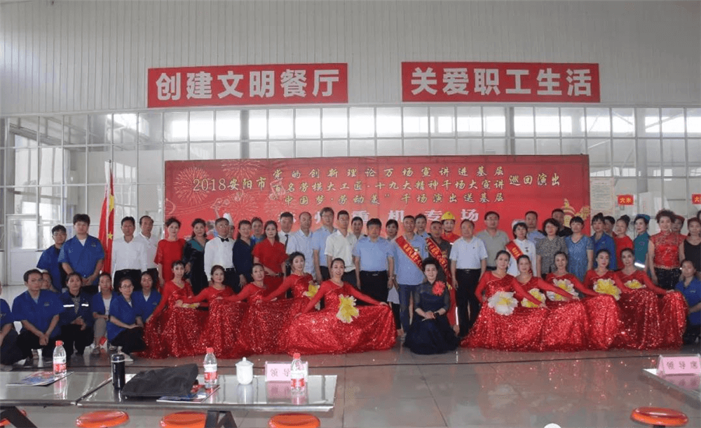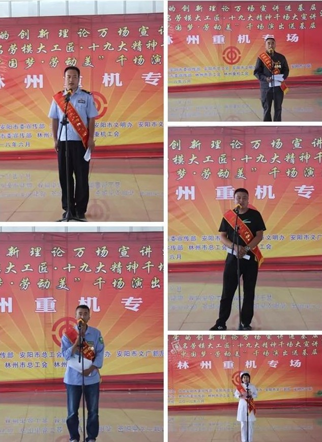 6月6日下午,安陽市黨的創(chuàng)新理論萬場宣講進(jìn)基層、百名勞模大工匠?十九大精神千場大宣講暨“中國夢 勞動(dòng)美”千場演出送基層巡回演出活動(dòng)走進(jìn)林州重機(jī)。河南省委宣傳部副部長尹書博,省委宣傳部理論處副處長楊小強(qiáng),省委宣傳部理論教育講師團(tuán)副團(tuán)長趙琳,安陽市委宣傳部副部長冀曉東,安陽市委宣傳部理論科長龍晨曦,安陽市總工會宣教部部長張艾敏,林州市委常委、宣傳部長王獻(xiàn)青,林州市總工會主席栗旺生,副主席張曉云, 公司黨委副書記、副總經(jīng)理趙正斌,黨委委員、工會主席路建存及職工代表300余人等出席活動(dòng)。